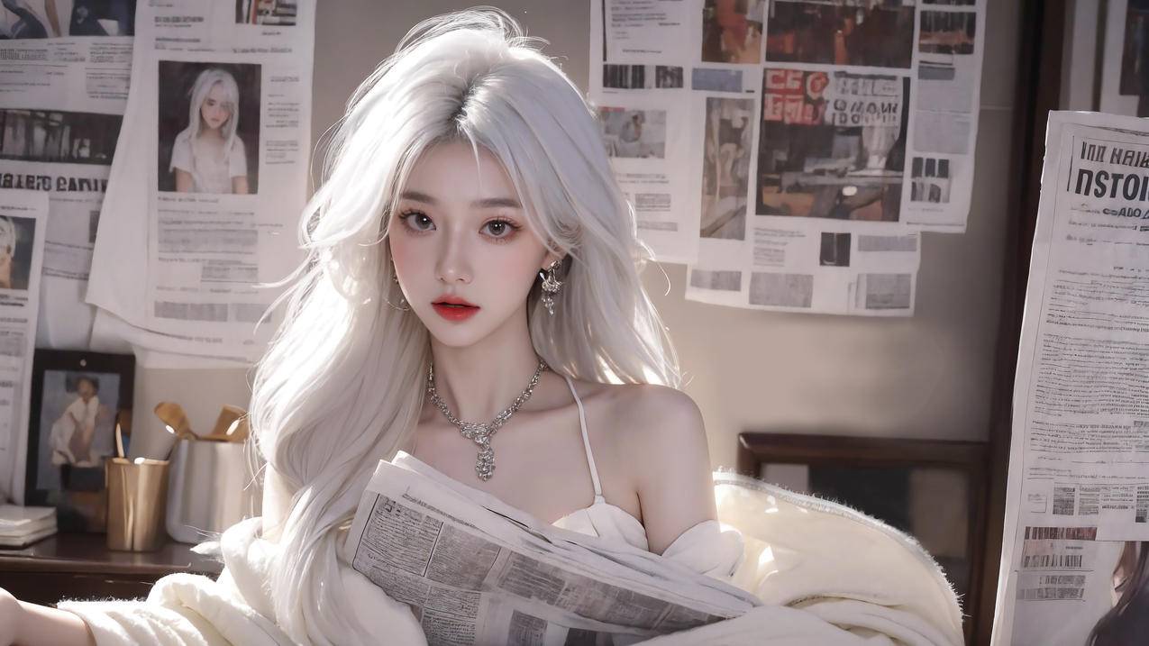 报纸墙 白色长发美女 精选好看动漫4K电脑高清壁纸