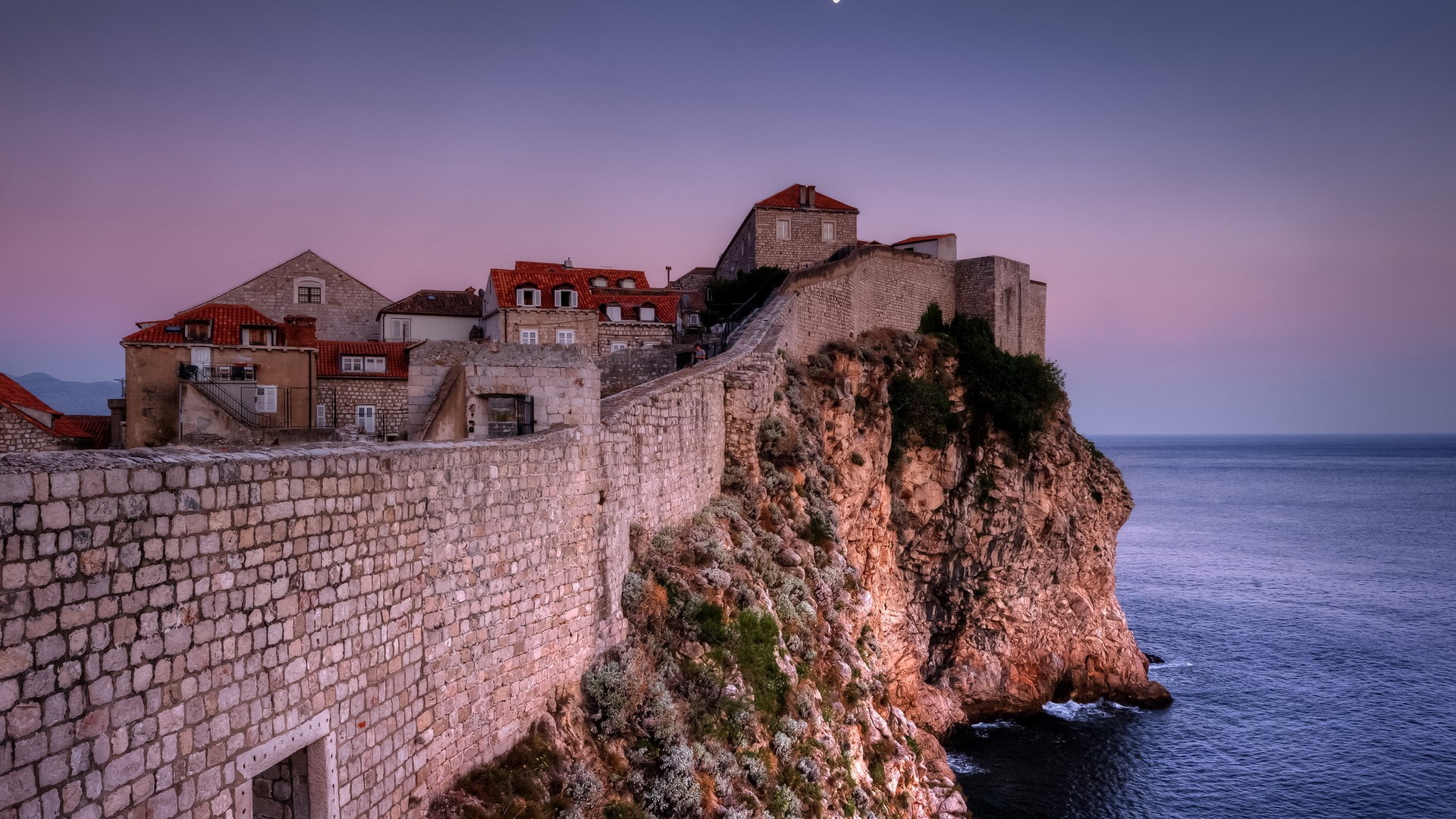 日落,海,城市,房子,天空的风景,桌面高清壁纸
