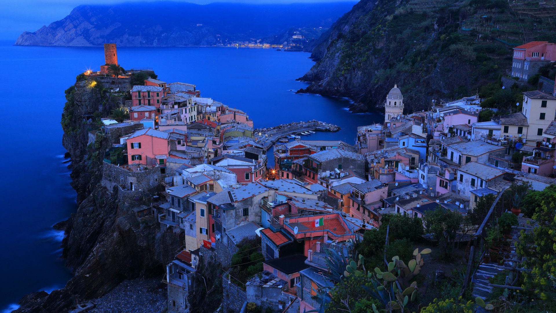 意大利,夜灯,海边城市风景桌面高清壁纸