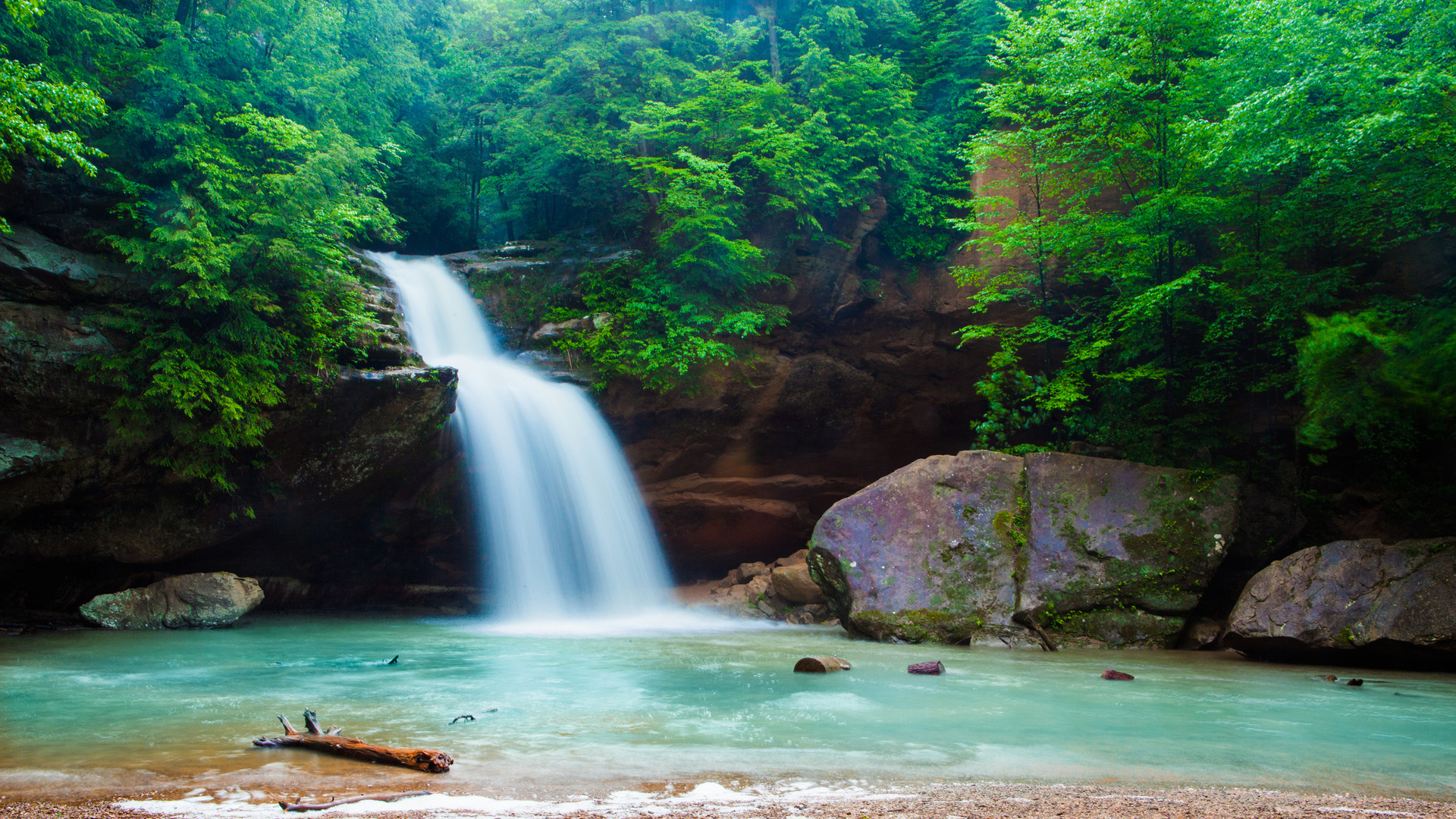 绿色森林,河流,瀑布,树林风景桌面高清壁纸