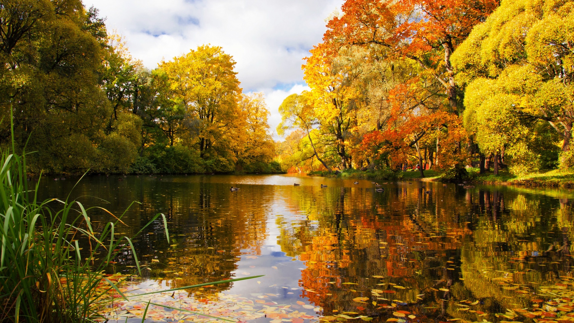 圣彼得堡公园,河流,池塘,秋天风景桌面高清壁纸