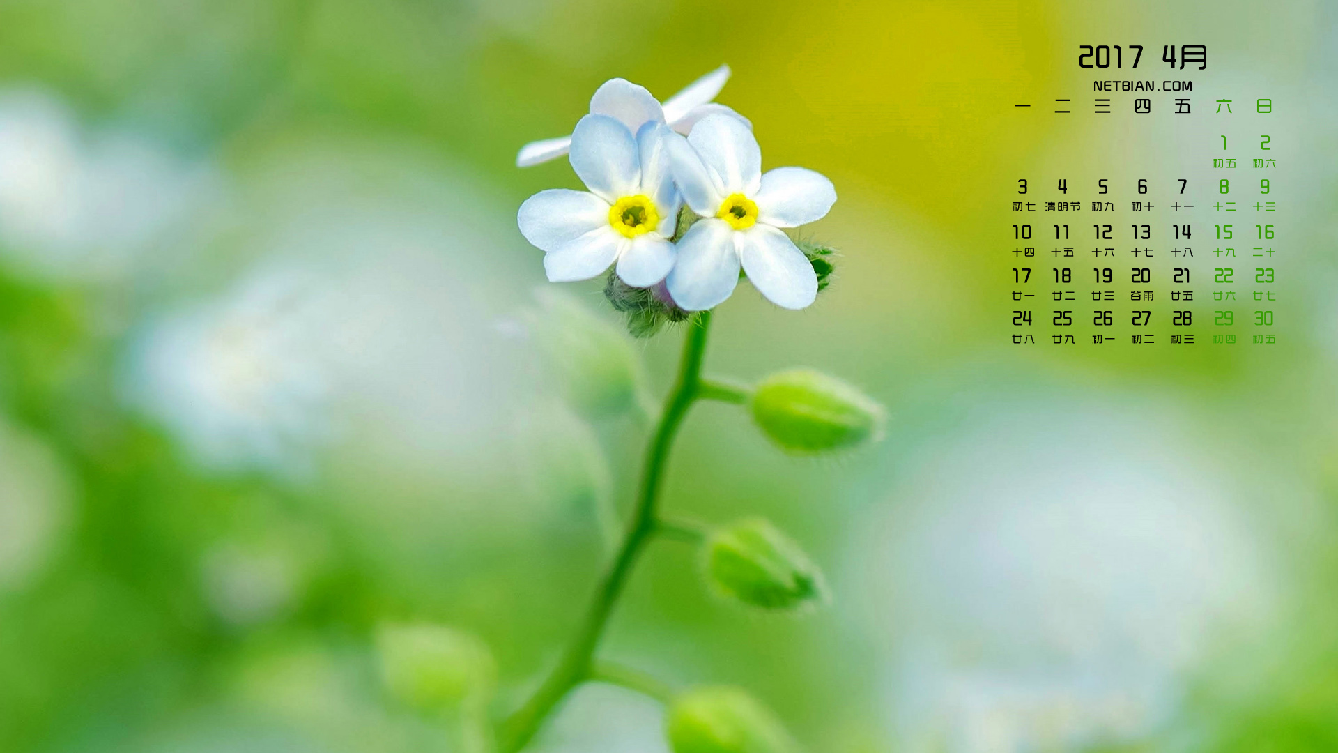小花朵2017年4月护眼日历桌面高清壁纸