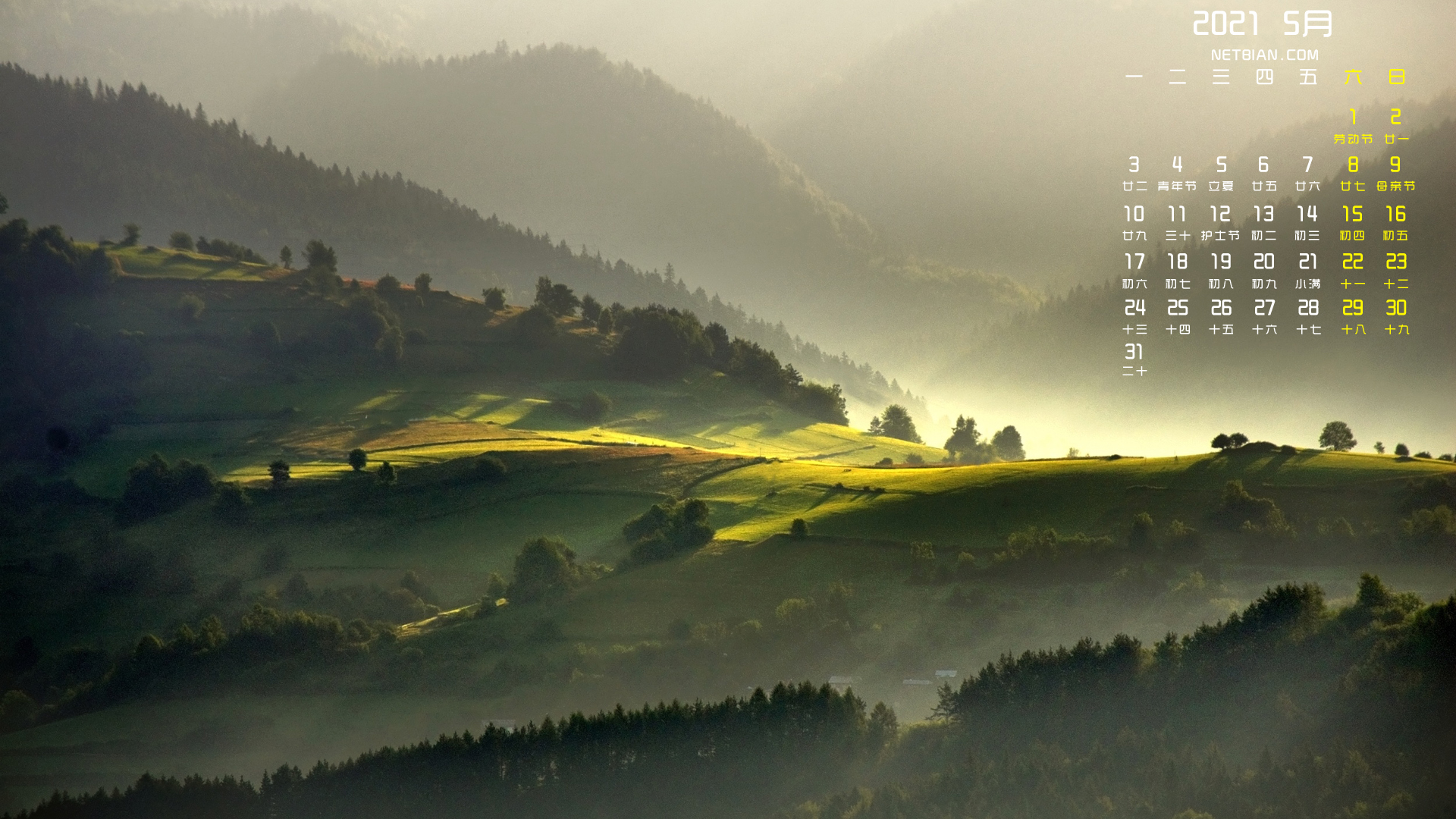 早晨风景2021年5月日历桌面高清壁纸