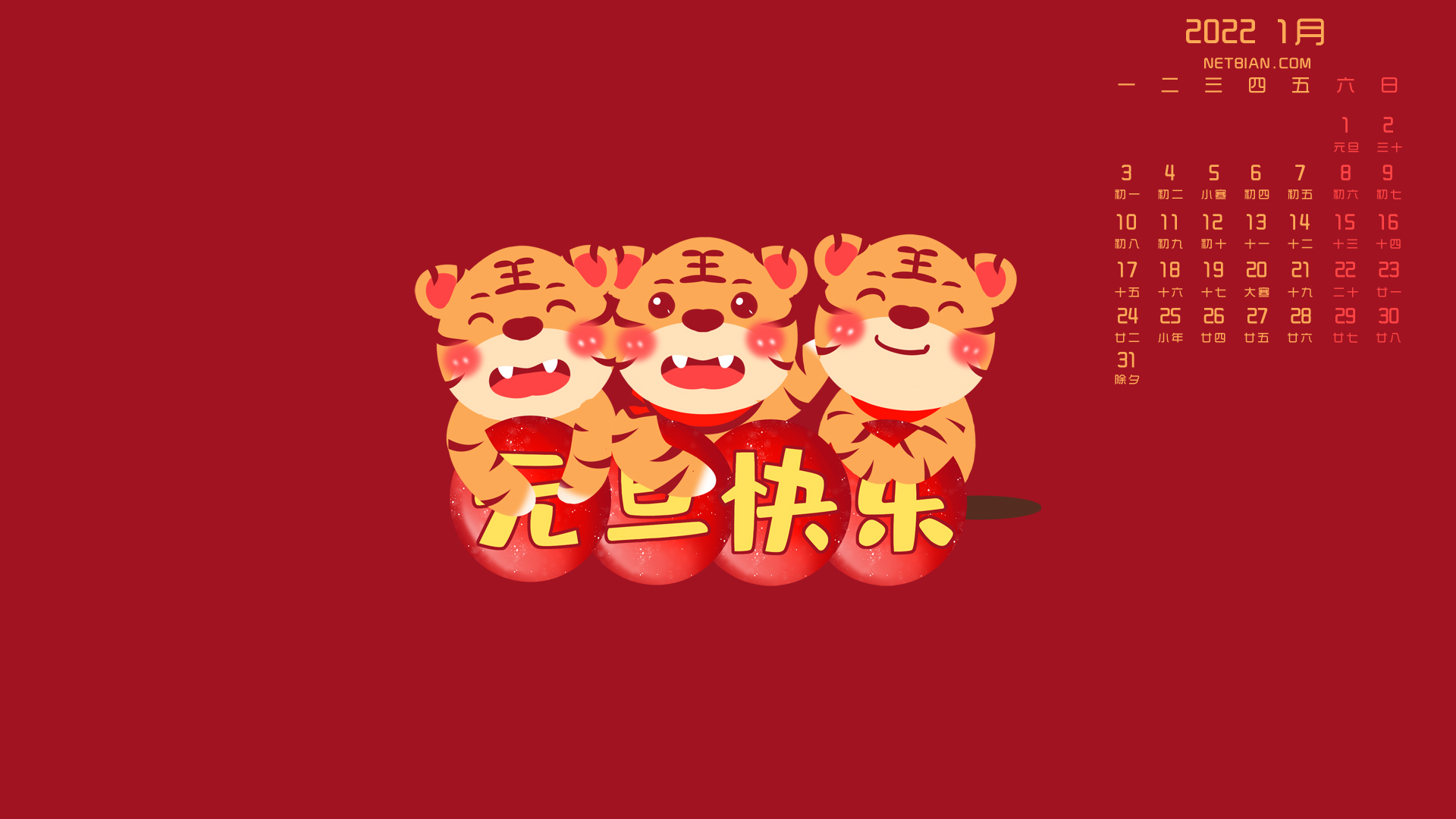 虎年新年快乐2022年1月日历桌面高清壁纸