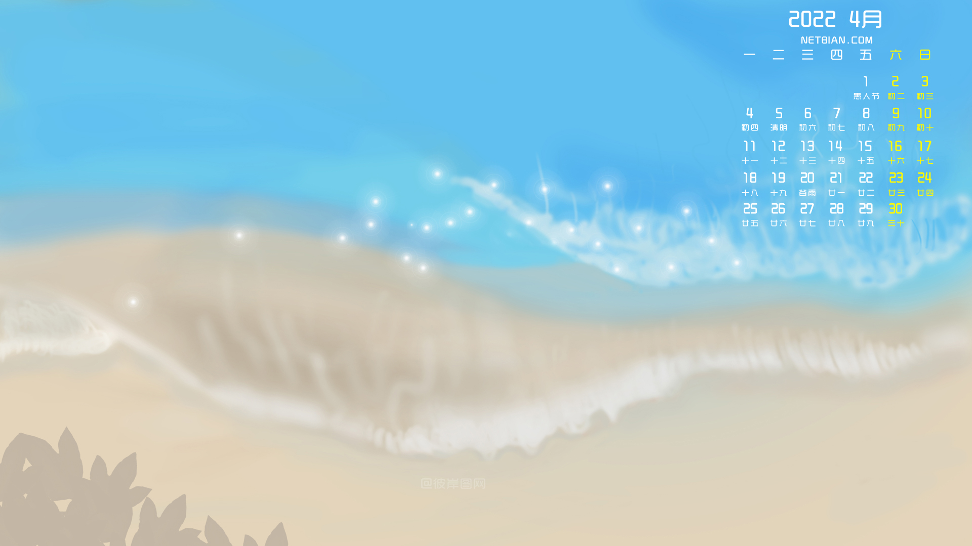 海浪沙滩风景2022年4月日历桌面高清壁纸