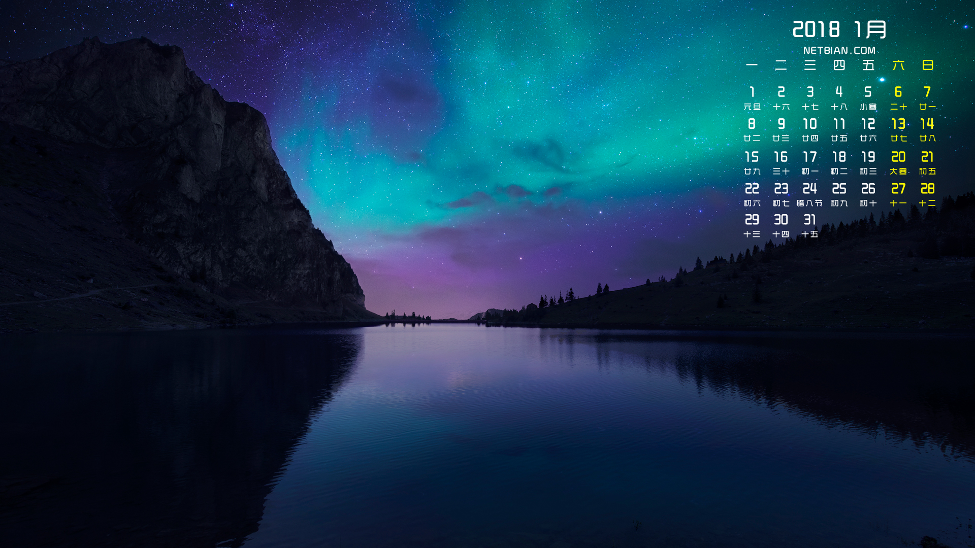 唯美夜空2018年1月日历风景桌面高清壁纸