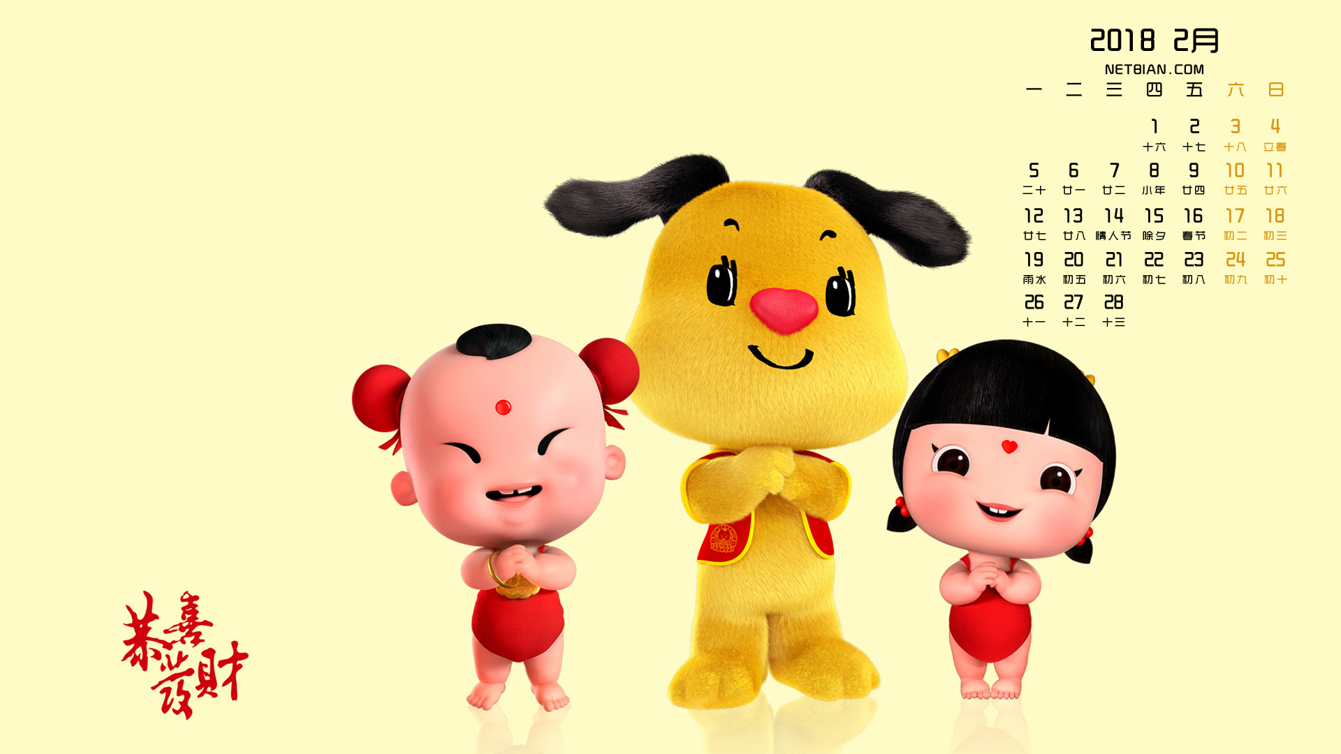 狗年大吉2018年2月日历桌面高清壁纸