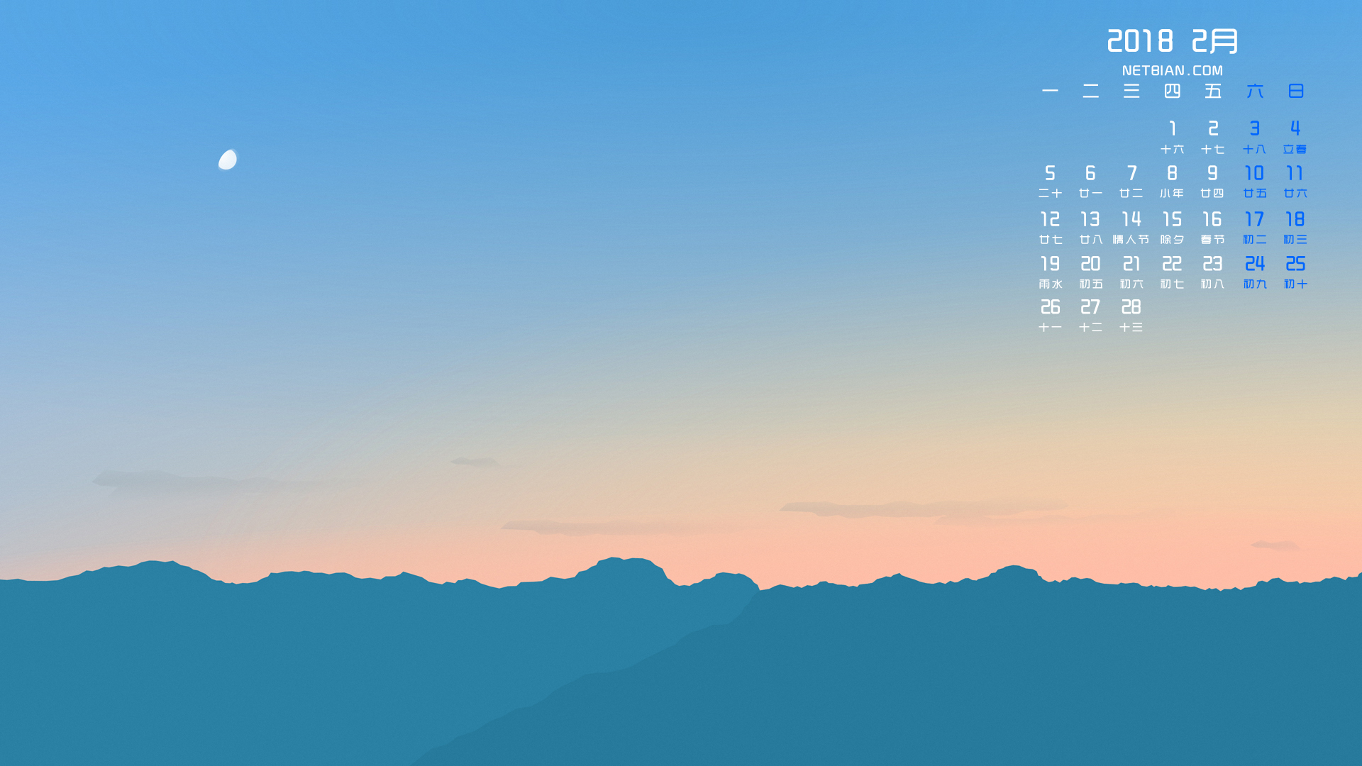 黎明风景极简主义2018年2月日历桌面高清壁纸