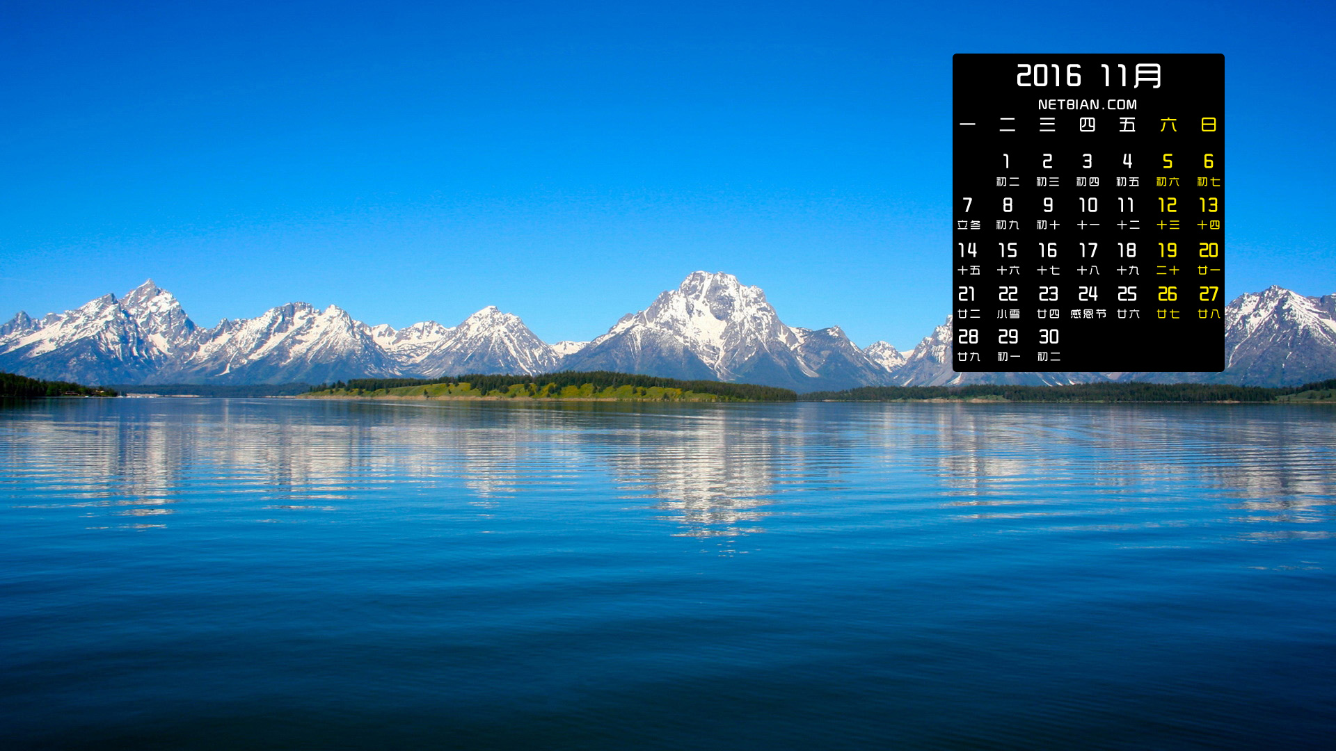 山脉湖泊风景2016年11月日历桌面高清壁纸