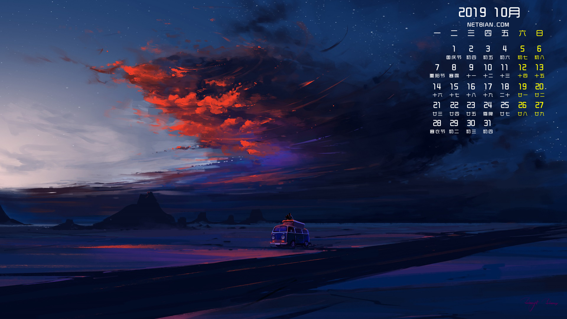 夕阳唯美女孩背影2019年11月日历桌面高清壁纸