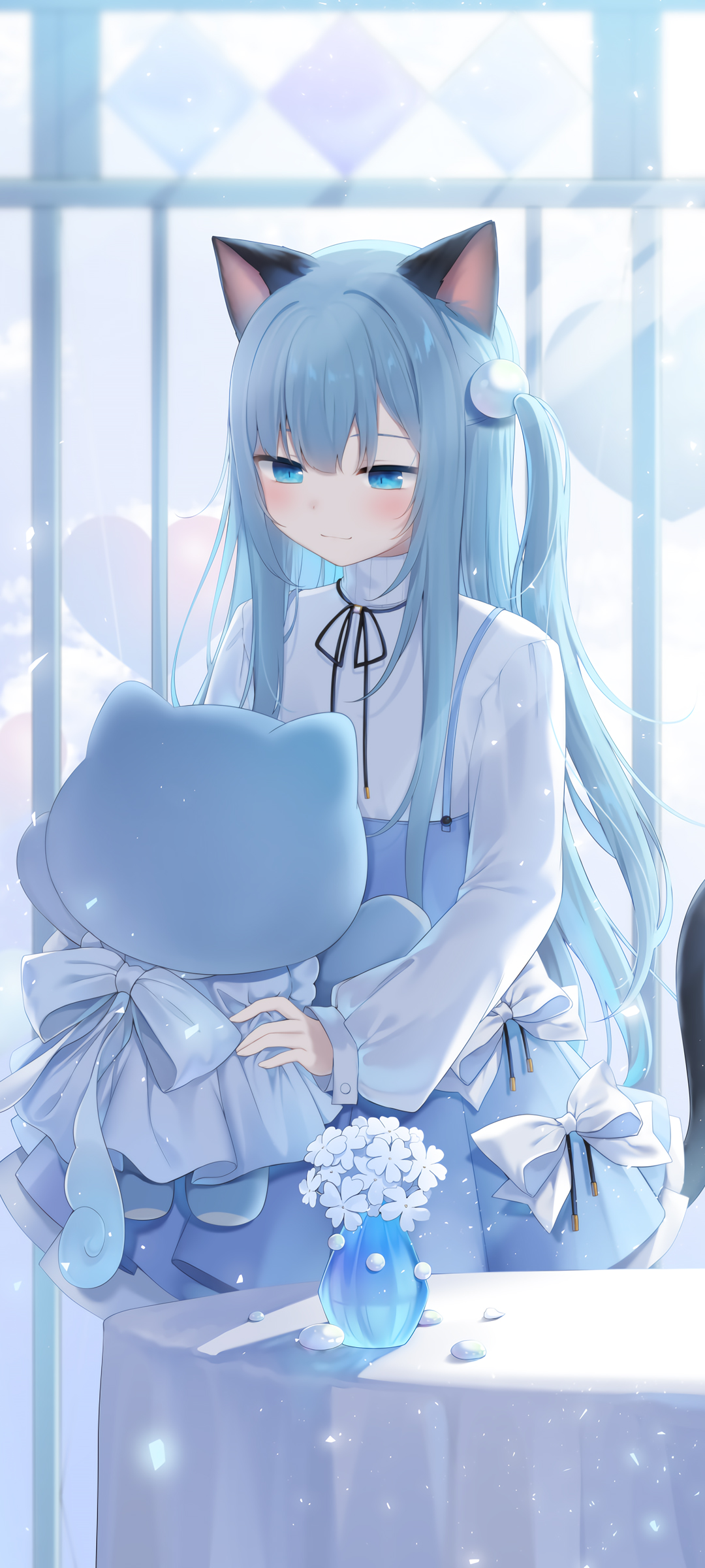猫羽雫 猫耳 可爱少女 蓝色眼睛 可爱毛绒玩具 花 动漫高清手机壁纸