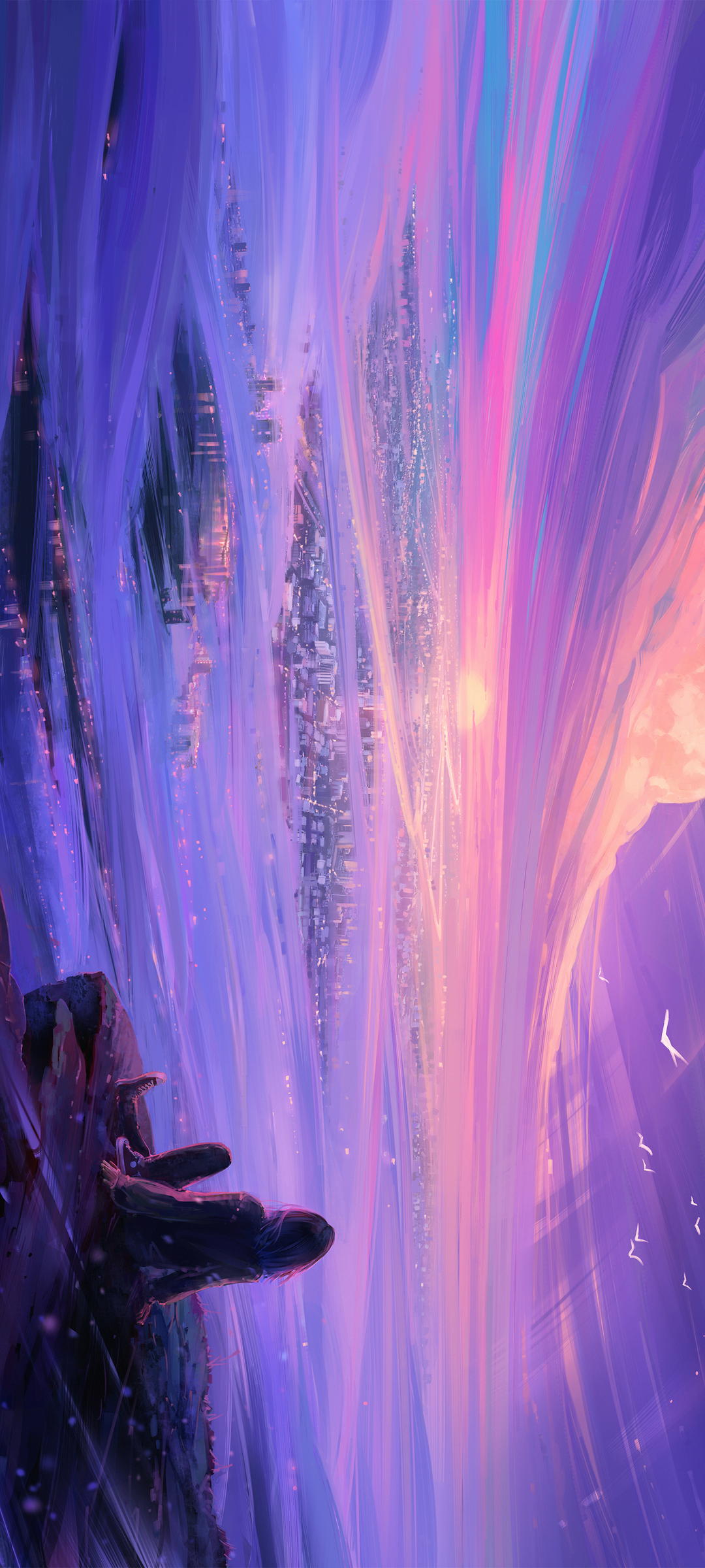 城市 女孩 风景 绘画 云 月亮 唯美高清手机壁纸