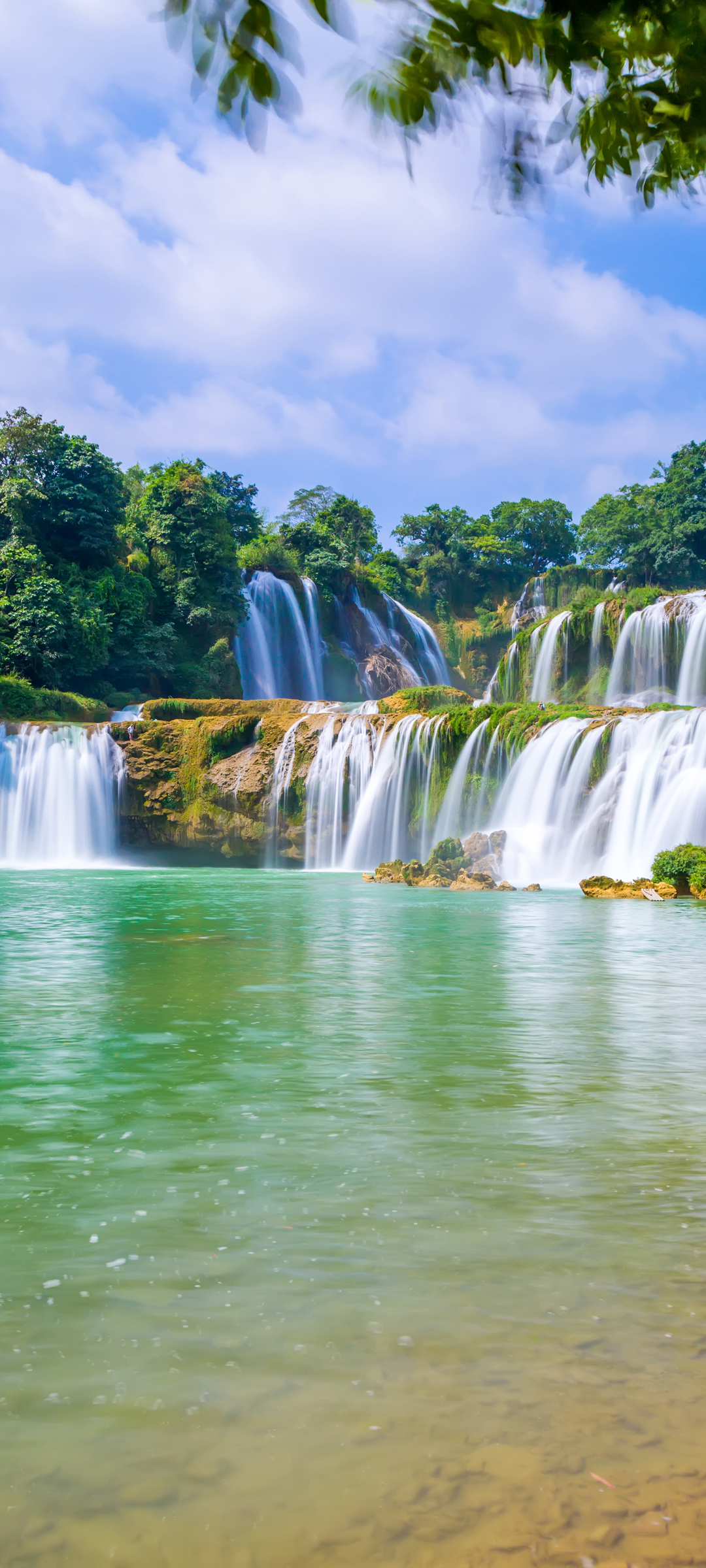 瀑布 蓝天白云 风景高清手机壁纸