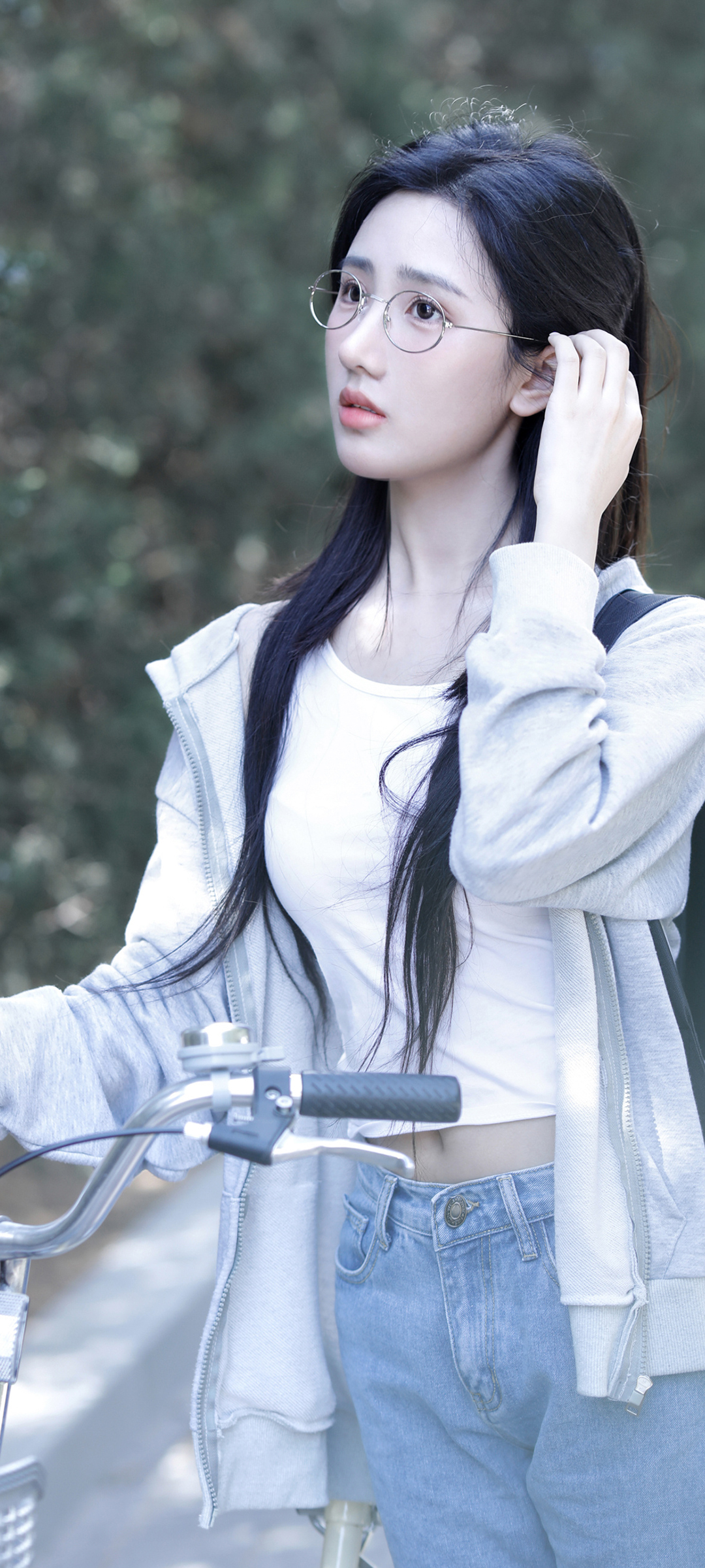 居家养眼美女背带牛仔裤全屏高清手机壁纸