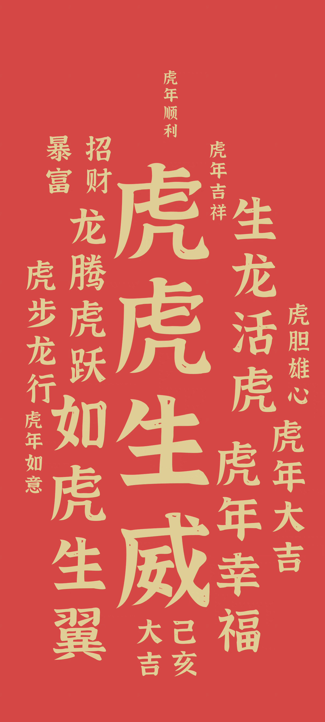 2022春节虎年虎虎生威吉祥文字 虎年大吉高清手机壁纸
