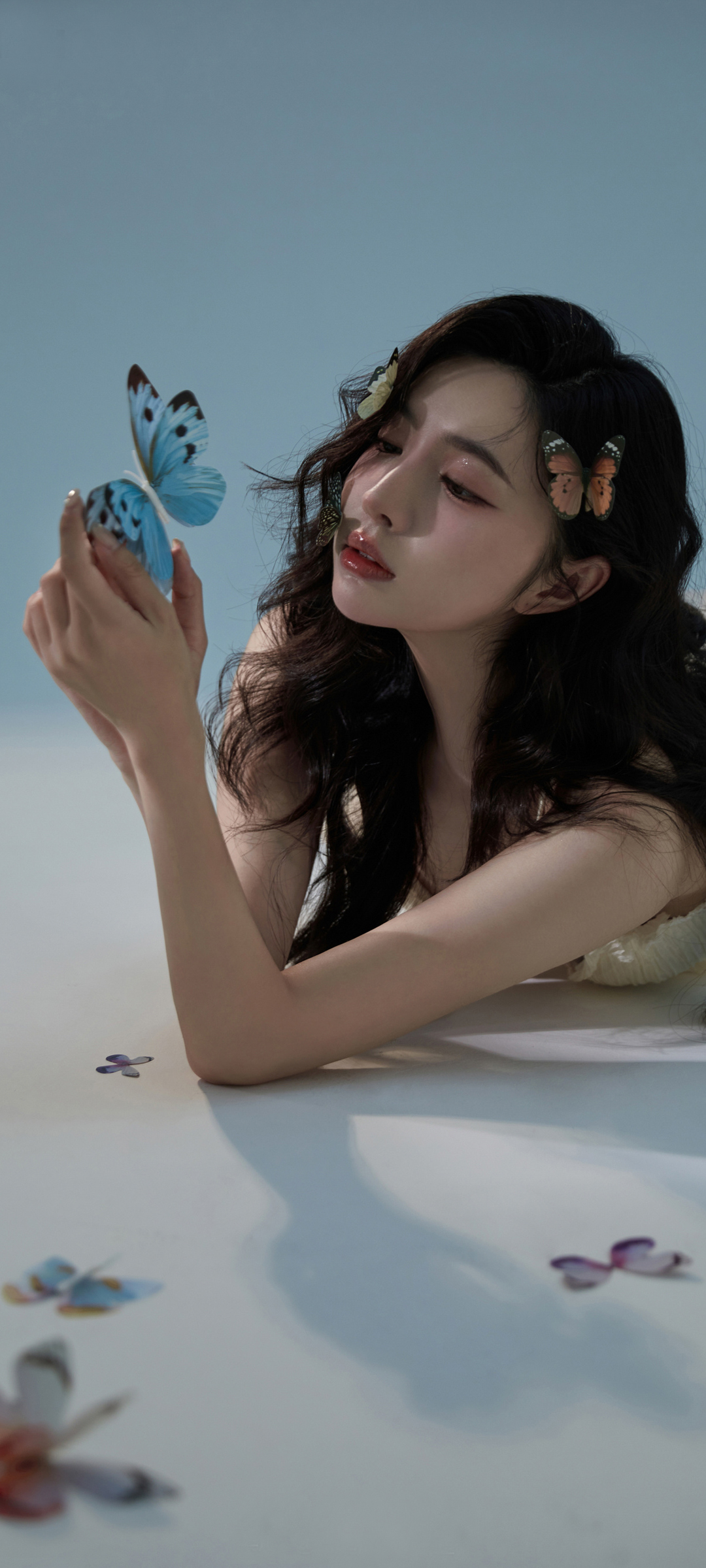 长卷发美女 蝴蝶 唯美 高清手机桌面背景